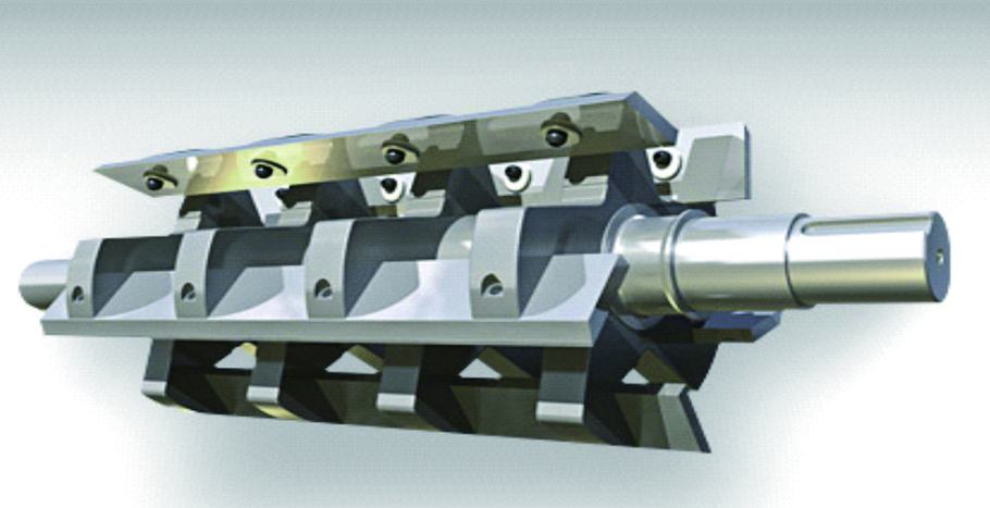 該結(jié)構(gòu)刀輥適合粉碎極為堅硬的材料,如膠頭、厚壁管、厚板、電線電纜等物料,以及生活垃圾做RDF(20-30mm)的細(xì)化破碎。