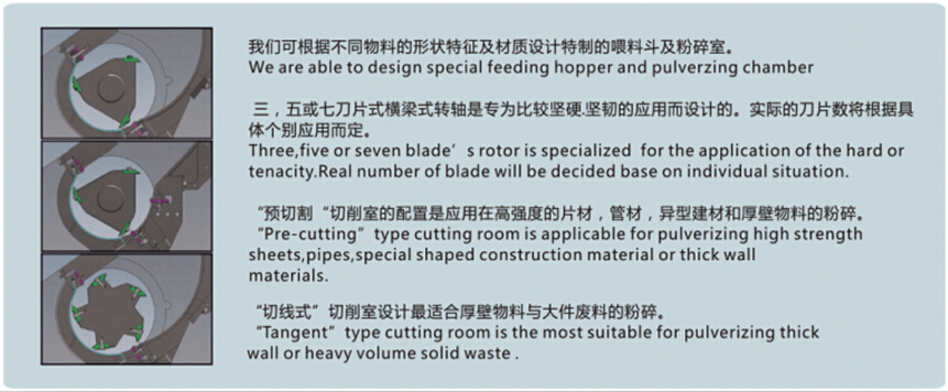 適合粉碎較為堅硬的管材、厚壁物體和厚的片材等物料。